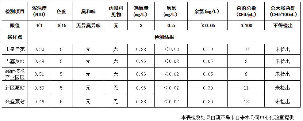 2017年9月6日葫蘆島市城市供水管網(wǎng)水質(zhì)信息