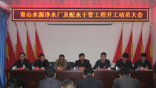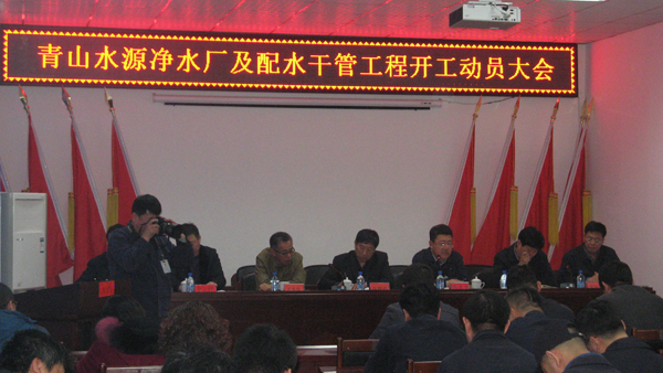 3月31日下午,公司召開(kāi)青山水源凈水廠及配水干管工程開(kāi)工動(dòng)員大會(huì)。市住建委副主任張庭政、紀(jì)檢副書(shū)記王玉良、事業(yè)科李云峰出席會(huì)議。會(huì)議由公司黨委書(shū)記張旭濱主持。