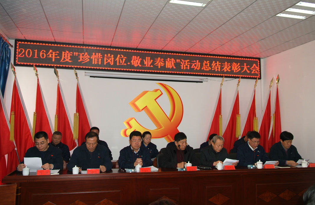 2月15日上午9時(shí),自來水公司2016年度“珍惜崗位、敬業(yè)奉獻(xiàn)”活動(dòng)總結(jié)表彰大會(huì)在高唱《國歌》聲中隆重開幕。先進(jìn)單位、先進(jìn)集體、先進(jìn)班組代表和39名先進(jìn)個(gè)人以及公司基層副職以上干部參加了會(huì)議。住建委黨委委員、副主任張庭政,政治部主任張澤起到會(huì)祝賀并講話。會(huì)議由公司黨委書記張旭濱主持。