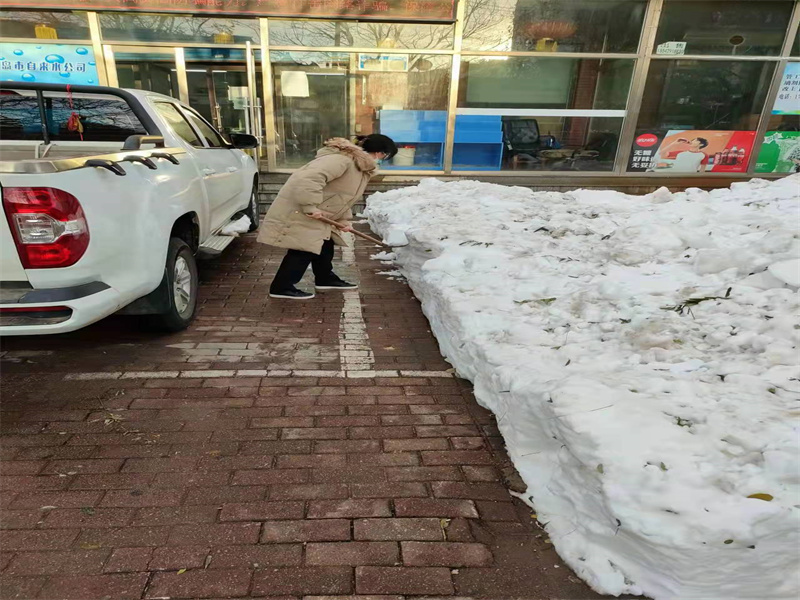 早晨寒冷的飛雪還沒有停,道路不通、公交停運(yùn),許多同志步行很長時間來到工作崗位,第一件事就是清除公司院內(nèi)外、水廠周圍、營業(yè)大廳門前等道路積雪。大家不顧天氣寒冷,掃積雪、鏟冰層、清雜物,干得熱火朝天。黨員干部率先垂范,以實際行動踐行“我為群眾辦實事”的初心使命,展示出黨員干部團(tuán)結(jié)協(xié)作的良好精神風(fēng)貌。風(fēng)雪雖大,卻敵不過眾志成城。公司干部職工齊心協(xié)力,經(jīng)過幾小時的共同奮戰(zhàn),及時保證了公司院內(nèi)外、各廠區(qū)、營業(yè)大廳道路的安全暢通,營造了和諧、友愛的社會環(huán)境,展現(xiàn)了員工良好的集體責(zé)任感和團(tuán)隊協(xié)作精神。