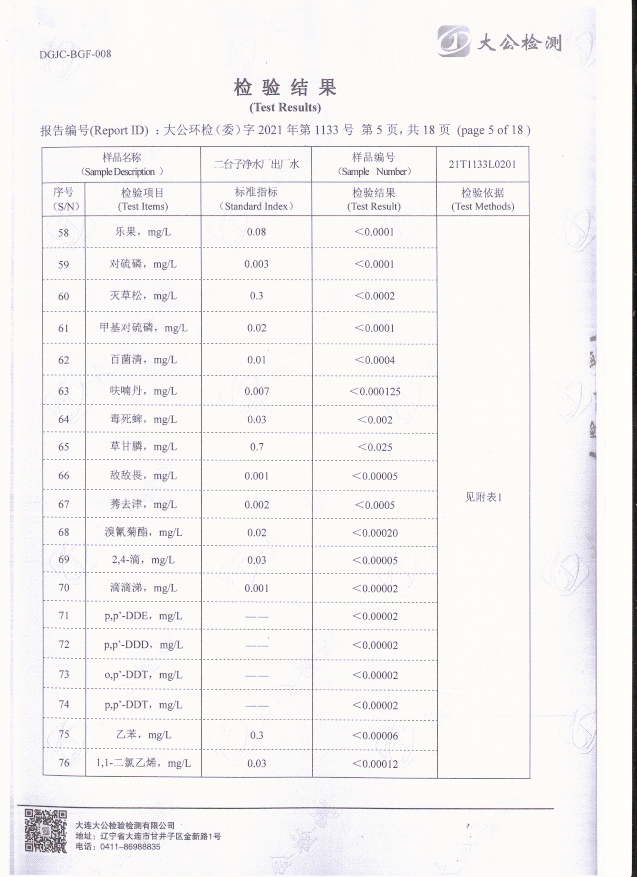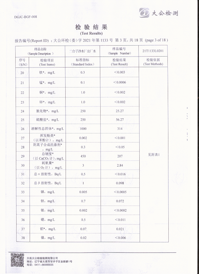 二臺子凈水廠出廠水檢驗(yàn)報(bào)告