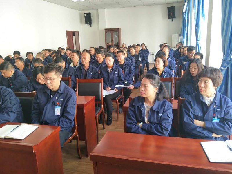 公司黨委書記張旭濱主持大會(huì),領(lǐng)導(dǎo)班子及擴(kuò)大成員、中層基層干部共100余人參加會(huì)議。