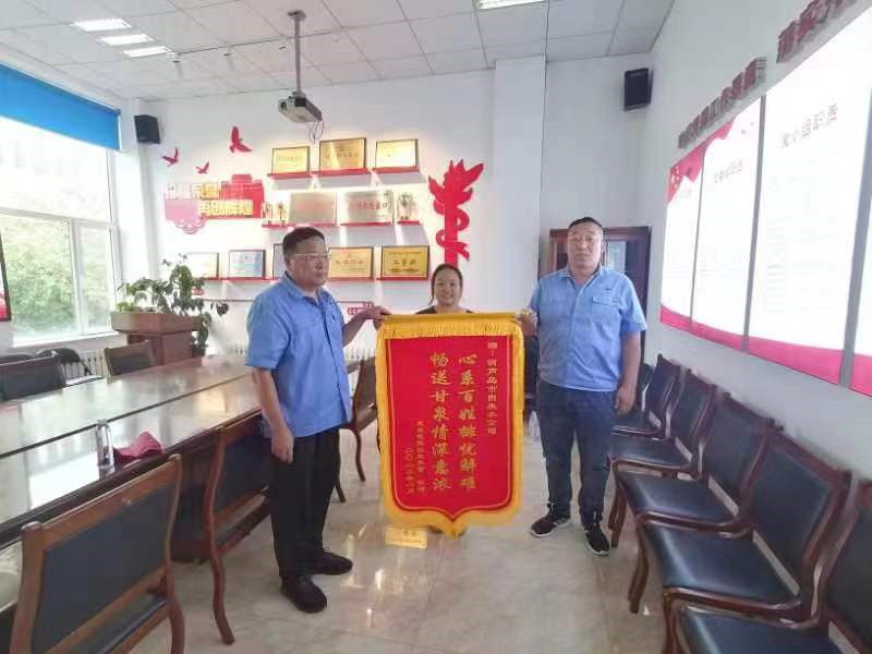 8月8日上午,龍程花苑業(yè)主李女士專程將一面寫著“心系百姓排憂解難、暢送甘泉情深意濃”的錦旗送到了自來水公司,衷心感謝自來水公司優(yōu)質(zhì)、高效、熱情的服務(wù)。