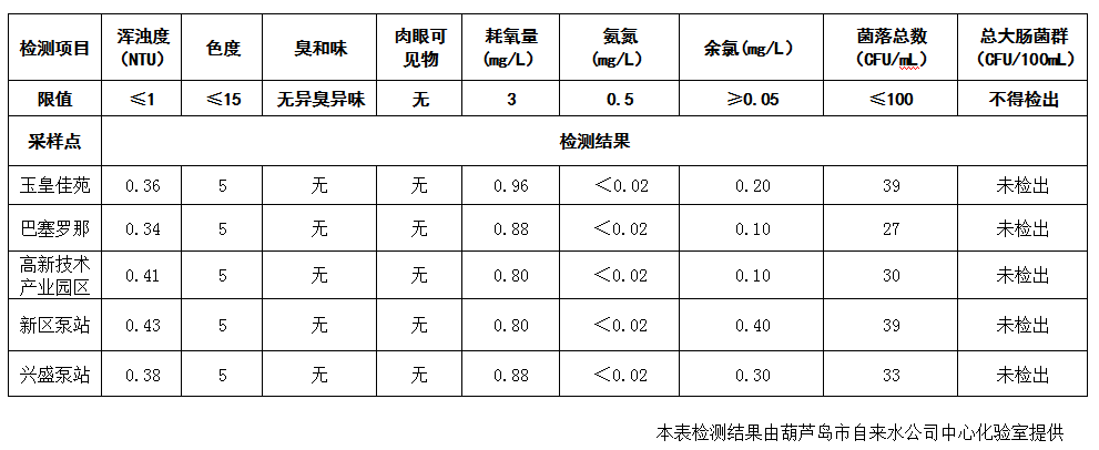 2017年4月19日葫蘆島市城市供水管網(wǎng)水質(zhì)信息