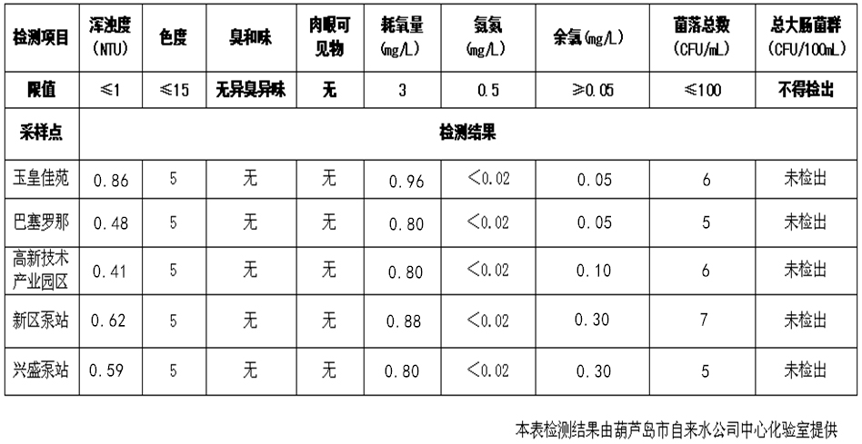 2017年2月15日葫蘆島市城市供水管網(wǎng)水質信息