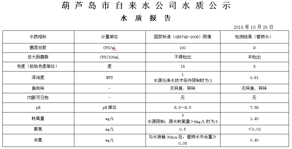 2016年10月第四周 水質(zhì)報告